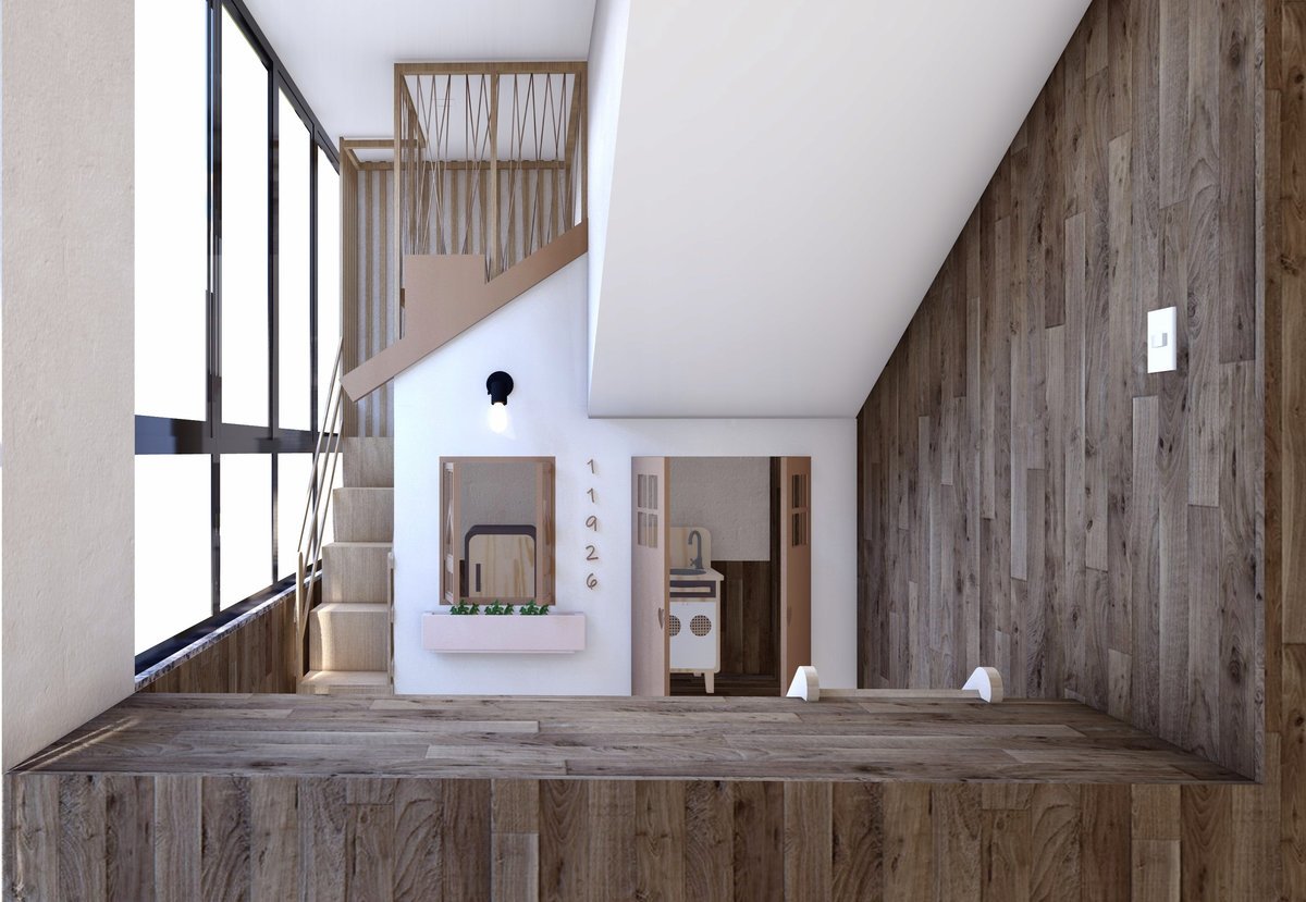 O grande destaque do ambiente foi uma casinha de boneca de dois andares, que funcionava como cenário de faz-de-conta e ponto de encontro das brincadeiras. Além dela, a ambientação contou com cores vivas, elementos gráficos que remetiam a viagens e áreas temáticas inspiradas em pontos turísticos, despertando a curiosidade e incentivando a criatividade dos pequenos.
