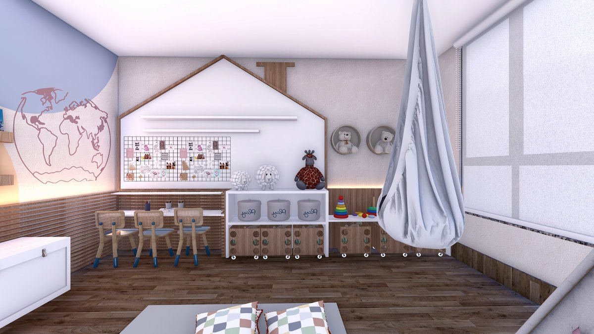O projeto da brinquedoteca teve como tema central “Viajar o Mundo”, criando um universo lúdico no qual as crianças podiam explorar diferentes culturas e lugares sem sair do espaço. Cada cantinho foi pensado para estimular a imaginação, o aprendizado e a troca de experiências, sempre através do brincar.