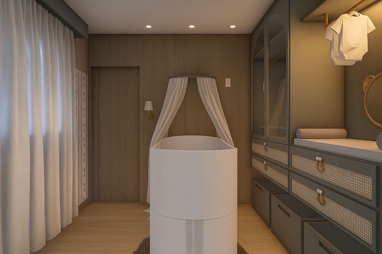 O resultado foi um espaço personalizado, acolhedor e cheio de significado, que une identidade familiar e funcionalidade para acompanhar as primeiras fases do bebê.